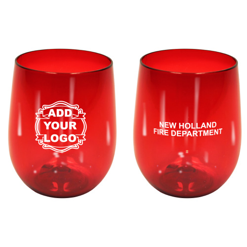 Custom 12 oz Plastic Stemless Cup - RedCrystal Clear PET plastic Shatterproof plastic Reusable Hand wash only Thinner flexible walls allow for full wine flavor908CR Details...