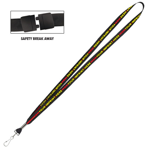 This 18” sturdy lanyard is made of recycled polyester and has multiple uses, making it perfect for schools, conferences, businesses and more. Comes with a plastic, contoured breakaway clasp and a metal swivel J hook. Price includes your repeated imprint on front and back.