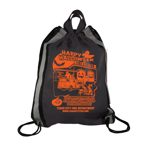 Imprinted Black Drawstring Backpacks - Halloween StationThese drawstring bags are an excellent way to promote your fire department or organization. And they have reflective stripes, helping kids be seen in the dark.995B Details...