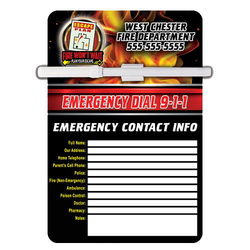 Cust. Magnetic Dry Erase Memo Board Emer. Contacts