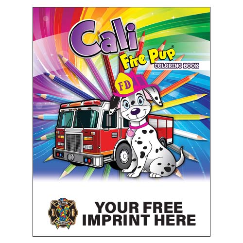This 18-page Coloring Book featuring Cali Fire Pup is very popular with children in kindergarten and first grade. Lots of pages to color, pages of activities and 10 fire safety tips for the entire family. Space available on the front cover for imprint.