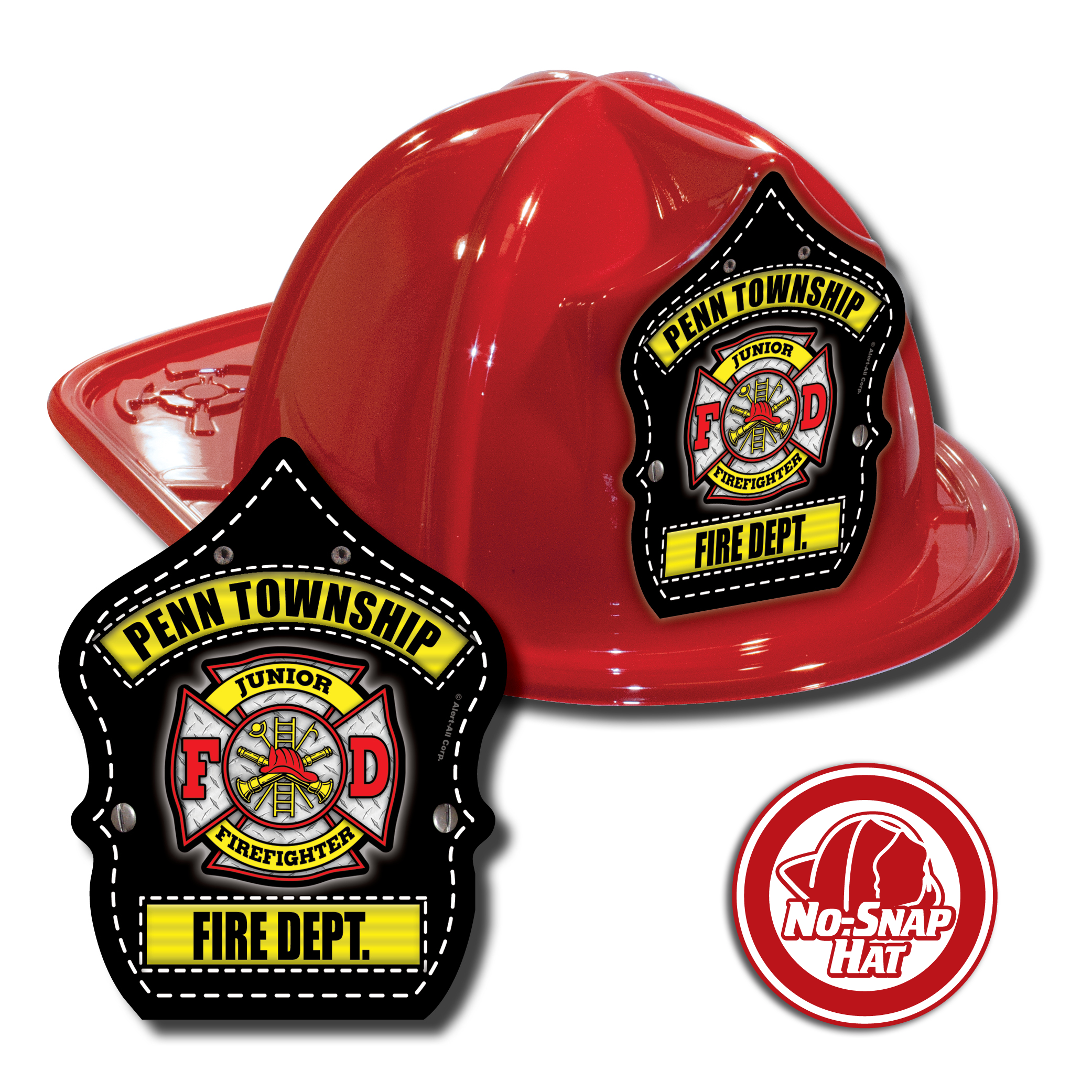 Custom Red Fire Hat w/ Black Jr. FF Cross Shield Watch their eyes light up when you give them their very own fire chief hat. These lightweight plastic hats are full size.Best quality plastic and shield in the USA456RM Details...