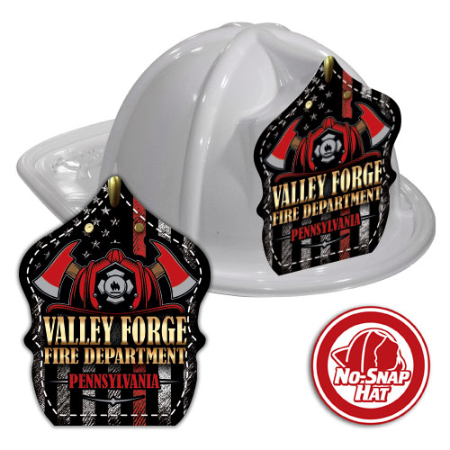 Custom White Fire Hat w/ Red Line Flag and Axes Shield Watch their eyes light up when you give them their very own fire chief hat. These lightweight plastic hats are full size.Best quality plastic and shield in the USA456W41 Details...
