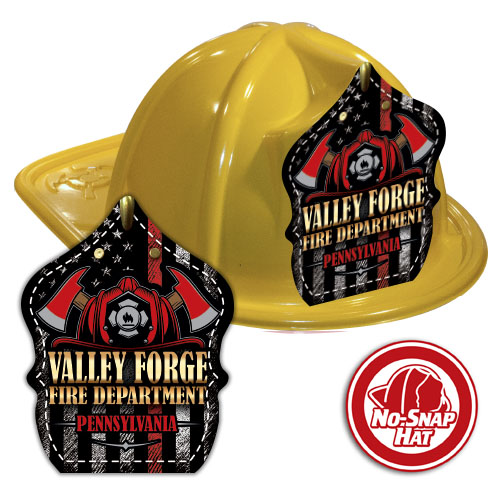Custom Yellow Hat w/ Black Jr FF Cross Shield Watch their eyes light up when you give them their very own fire chief hat. These lightweight plastic hats are full size.Best quality plastic and shield in the USA456YM Details...