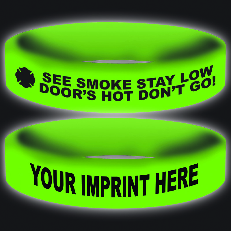 Imprinted Glow Awareness Band - Green - See Smoke Stay Low Message