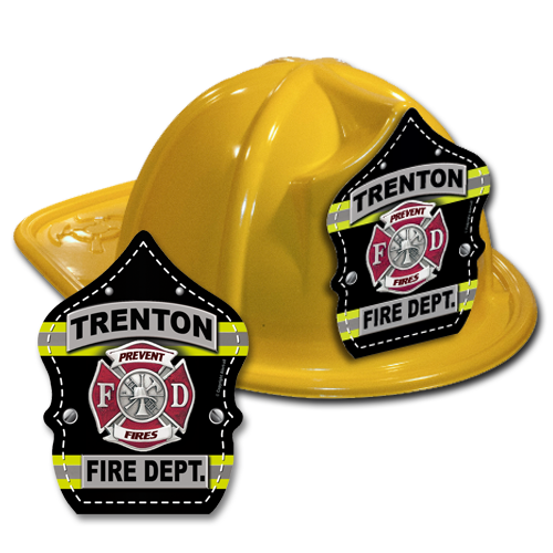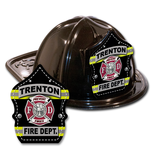Custom Striped Shield on Black Fire Hat Watch their eyes light up when you give them their very own fire chief hat. These lightweight plastic hats are full size.Best quality plastic and shield in the USA456BU Details...