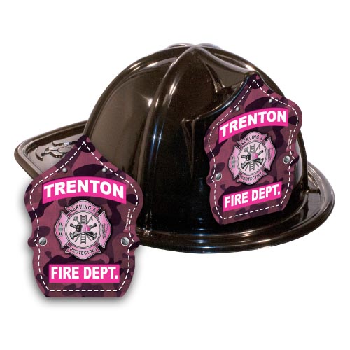 Imp. Fire Hats - Black w/ Pink Camo ShieldWatch their eyes light up when you give them their very own fire chief hat. These lightweight plastic hats are full size.Best quality plastic and shield in the USAW956B1 Details...