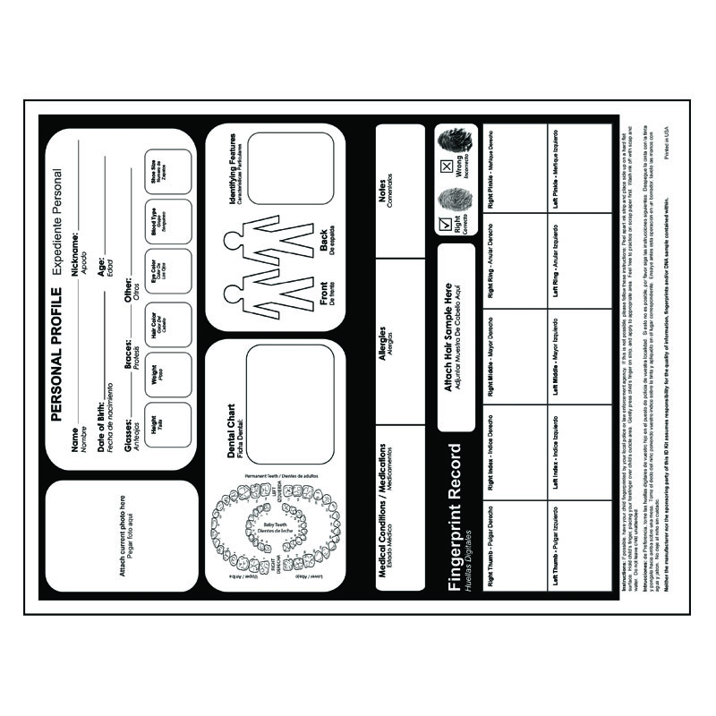 Valuable Safety Items for any parent. Record keeping sections for Personal Data: Photo, identifying features, dental record, medical conditions and a full fingerprint record. Includes Safety Tips and section for emergency phone numbers.
