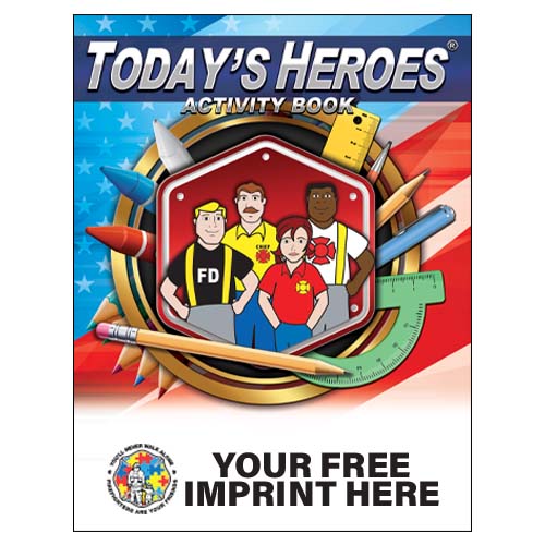 Imprinted Today's Heroes Act Book - Full Color Jr FF MalteseThe Today's Heroes members teach kids fire safety through fun activities like connect the dots, secret codes, and maze games in this 18-page book. The special centerfold game is sure to keep kids busy learning fire safety for hours.160I25 Details...