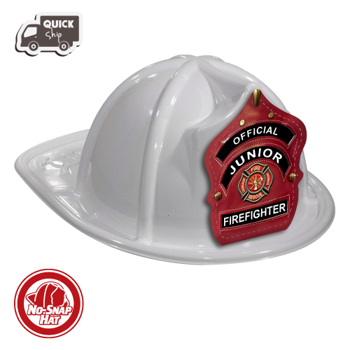White Fire Hat- Jr. FF Red Leather These lightweight plastic hats are full-sized at 11 1/2". Shields are printed on top quality card stock. In stock for immediate shipping.Be sure to check out our CUSTOM FIRE HATS or see how to CREATE YOUR OWN FIRE HAT077WN Details...