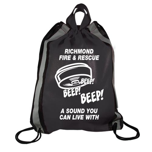 Imprinted Black Drawstring Backpacks - Smoke AlarmThese drawstring bags are an excellent way to promote your fire department or organization. And they have reflective stripes, helping kids be seen in the dark.992BK14 Details...