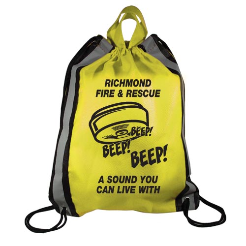 Imprinted Yellow Drawstring Backpacks - Smoke AlarmThese drawstring bags are an excellent way to promote your fire department or organization. And they have reflective stripes, helping kids be seen in the dark.992YL14 Details...