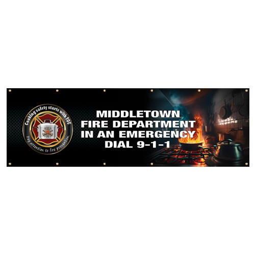 Made of13 oz outdoor vinyl with four grommets for hanging.