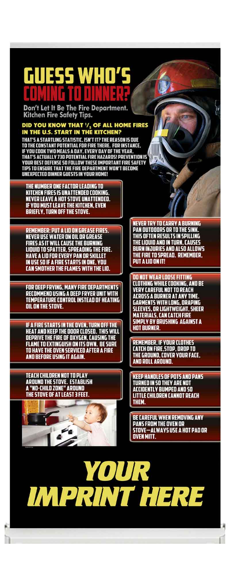 These retractable information banner stands are great for presentations and displays. Standing over 6 ½ feet and nearly 3 feet wide, these stands are a great companion for our fire safety brochures and are full of valuable information.