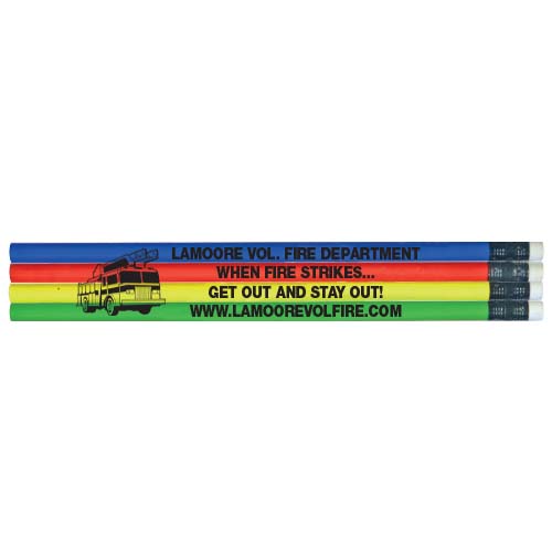 Chose a stock logo and let us know your imprint information, up to 5 lines. Pencils come assorted in bright, neon colors, imprint in black.