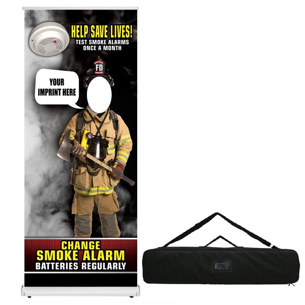 The Firefighter photo prop will be a great addition for your display and kids will love them! This photo prop is made out of vinyl and has a roll up metal stand and bag included. Made for both indoor and outdoor use. This photo prop is free standing at the size of 33"W x 80"H