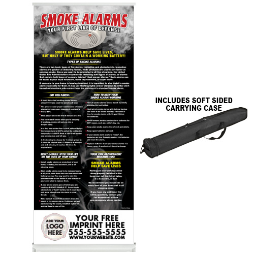 These retractable information banner stands are great for presentations and displays. Standing over 6 ½ feet and nearly 3 feet wide, these stands are a great companion for our fire safety brochures and are full of valuable information.
