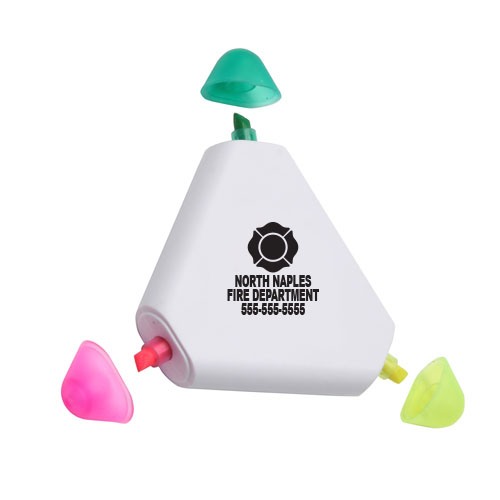 This triangular highlighter is popular with all ages. You can highlight copy in yellow, pink, or green. Printed with the fire safety message as shown in black ink.