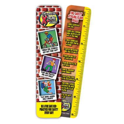 This 6" laminated bookmarker is printed in bright colors with many fire safety reminders. Fire safety rules and a 6" ruler printed on back.