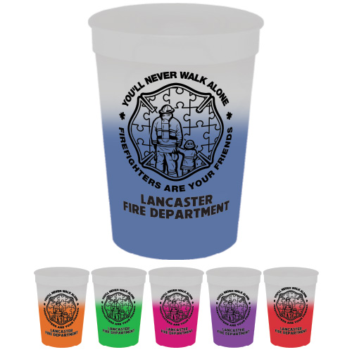 Imp 17 oz Mood Frosted Cups - Assorted - Autism Awareness Firefighter Logo