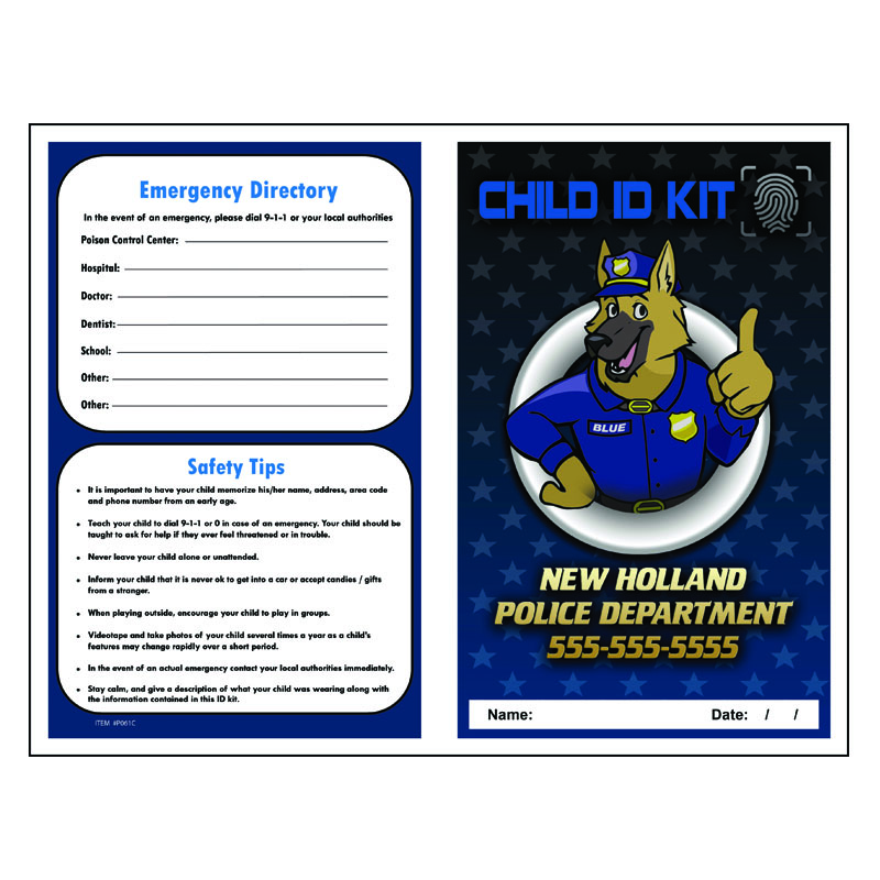 Valuable Safety Items for any parent. Record keeping sections for Personal Data: Photo, identifying features, dental record, medical conditions and a full fingerprint record. Includes Safety Tips and section for emergency phone numbers.