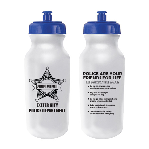 Imprinted 20 oz Bike Bottle - Frosted w/ Blue Lid - Police Star