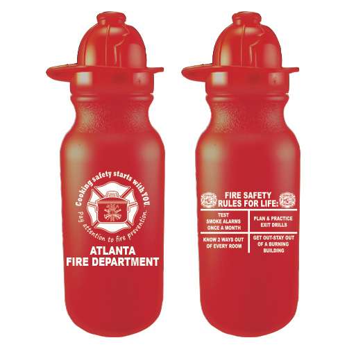 /Fire Prevention/ Fire Prevention Theme/2023 - Cooking safety starts with YOU!/Imprinted 20 oz Red Bike Bottle w/ Fire Hat Lid - 2023 Theme