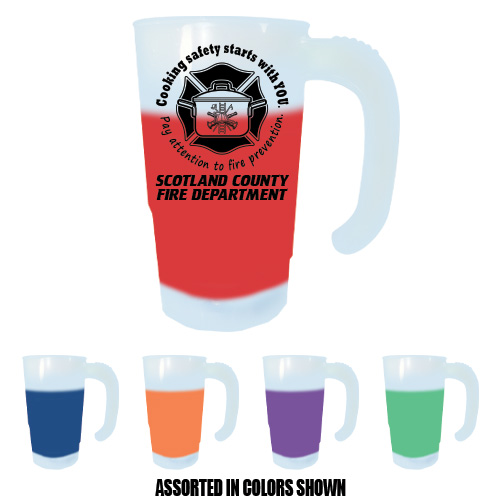 Mugs are shipped assorted in colors shown and are frosty white until filled with cold liquid.
