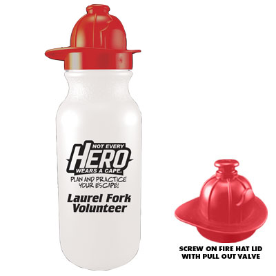 Imprinted 20 oz White Bike Bottle w/ Fire Hat Lid - 2019 Theme
