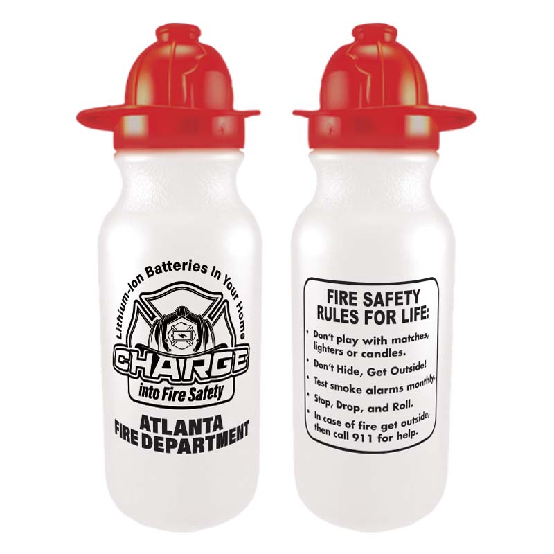 Imprinted 20 oz White Bike Bottle w/ Fire Hat Lid - 2025 Theme