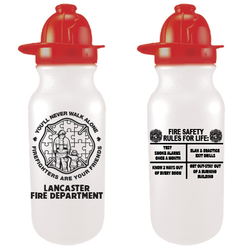 /Fire Prevention/Autism Awareness/Imprinted 20 oz White Bike Bottle w/ Fire Hat Lid - Autism Awareness Firefighter