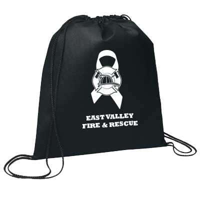 Imprinted Black Cinch Backpack - Ribbon Cross