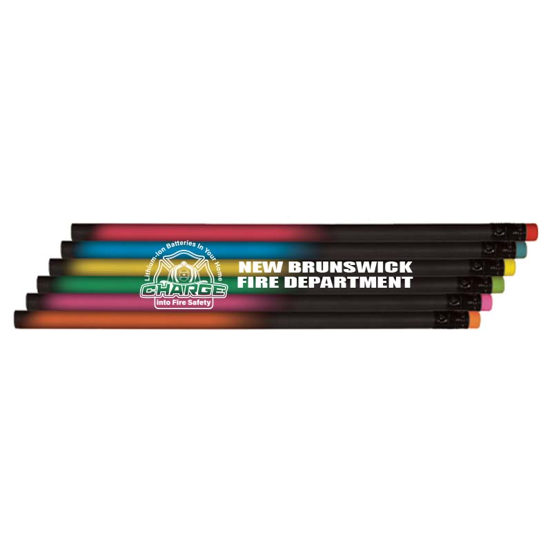 Pencils shipped in 6 assorted colors; yellow, red, pink, orange, green, blue. Imprint in White.