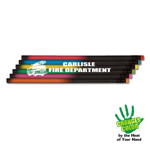 Pencils shipped in 6 assorted colors; yellow, red, pink, orange, green, blue. Imprint in White.