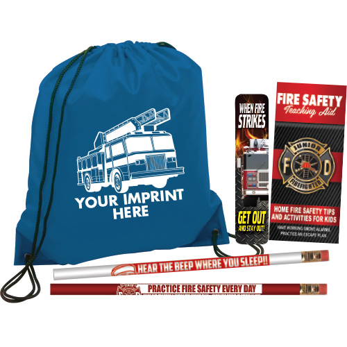 Imprinted Blue Cinch Backpack Kit - Fire Truck
