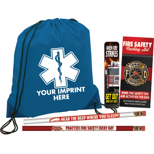 Imprinted Blue Cinch Backpack Kit - Star Of Life