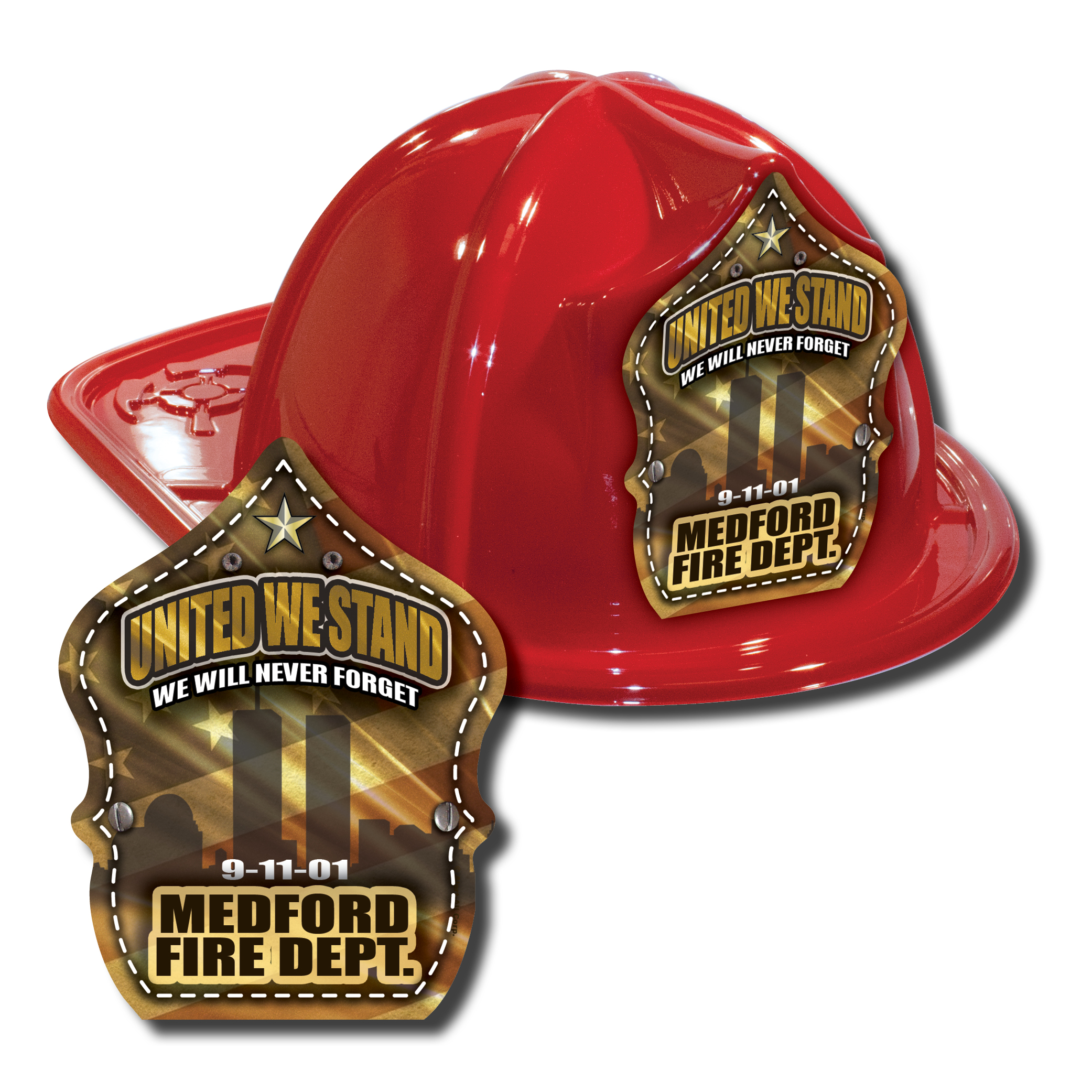 Imprinted Fire Hat - Red - 9/11 Gold Flag Shield