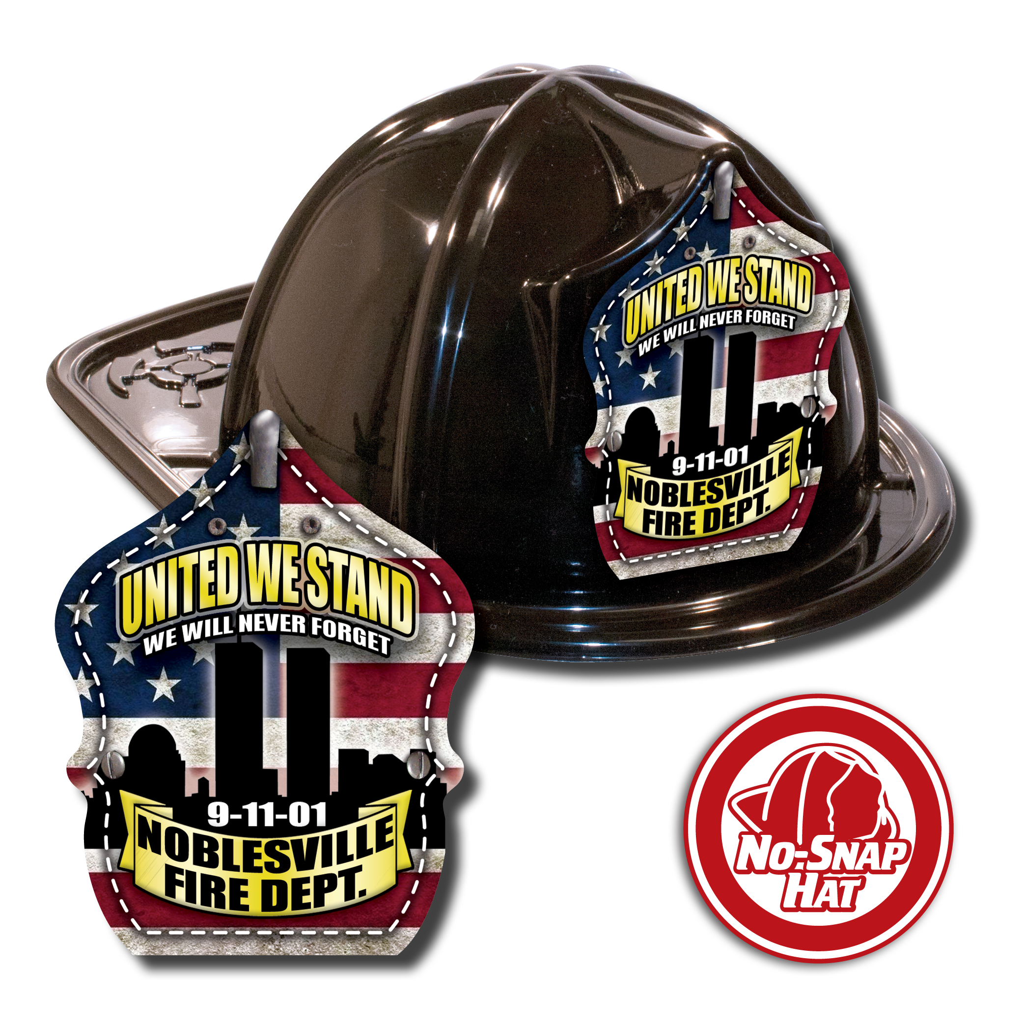 Imprinted Fire Hats - Black - 9/11 Flag Shield
