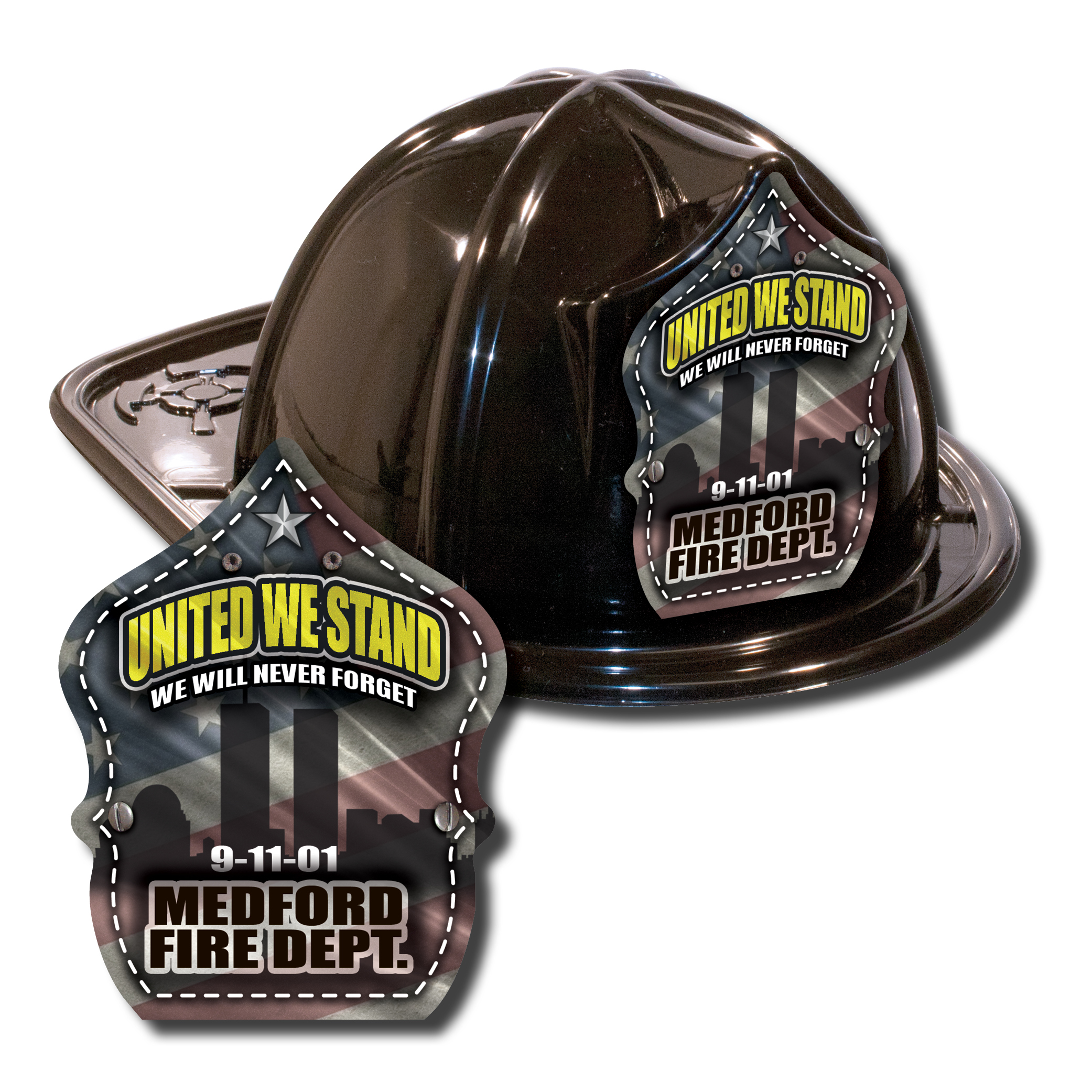 Imprinted Fire Hats - Black - 9/11 Silver Flag Shield