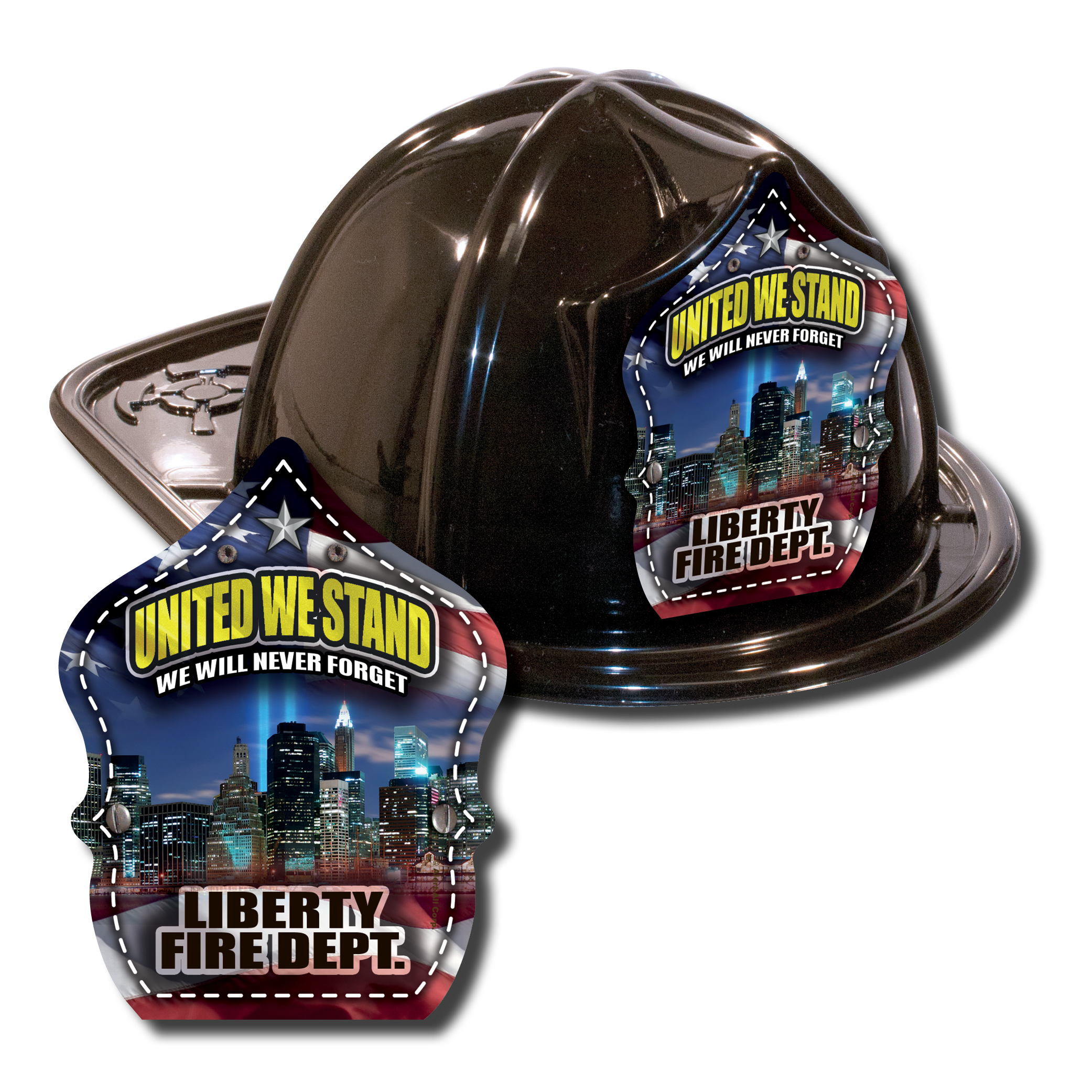 Imprinted Fire Hats - Black - 9/11 Skyline Shield