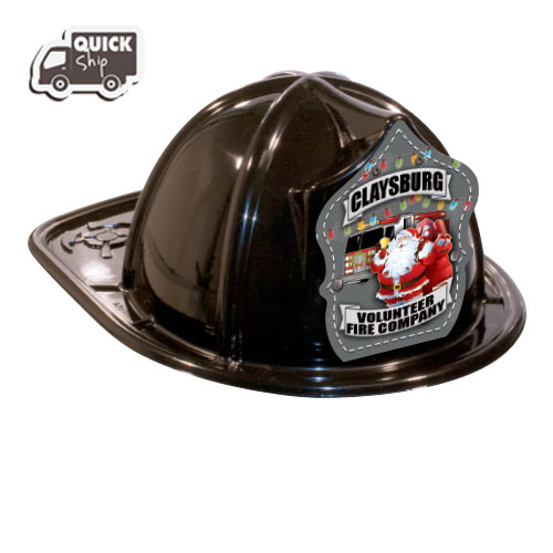 Imprinted Fire Hats - Black - Christmas Santa Shield