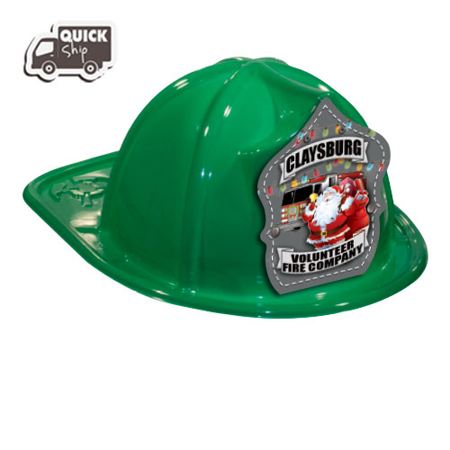 Imprinted Fire Hats - Green - Christmas Santa Shield