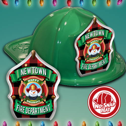 Imprinted Fire Hats - Green - Happy Holiday Shield