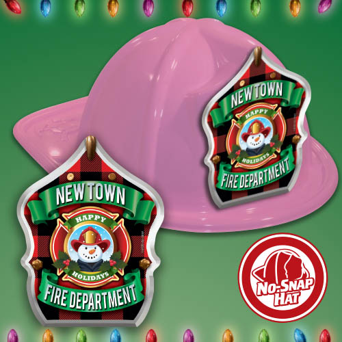 Imprinted Fire Hats - Pink - Happy Holiday Shield