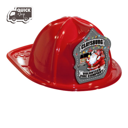 Imprinted Fire Hats - Red - Christmas Santa Shield
