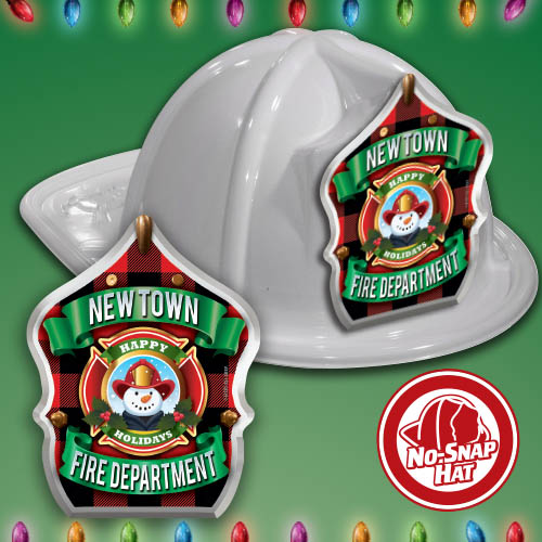 Imprinted Fire Hats - White - Happy Holiday Shield