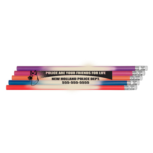 Pencils come assorted in 5 colors: Orange, Pink, Purple, Red, and Blue.