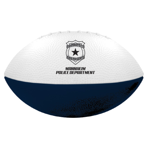Imprinted Navy Blue / White Foam Football - Serve & Protect Logo