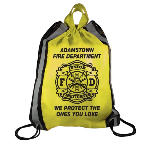 These drawstring bags are an excellent way to promote your fire department or organization. And they have reflective stripes, helping kids be seen in the dark.