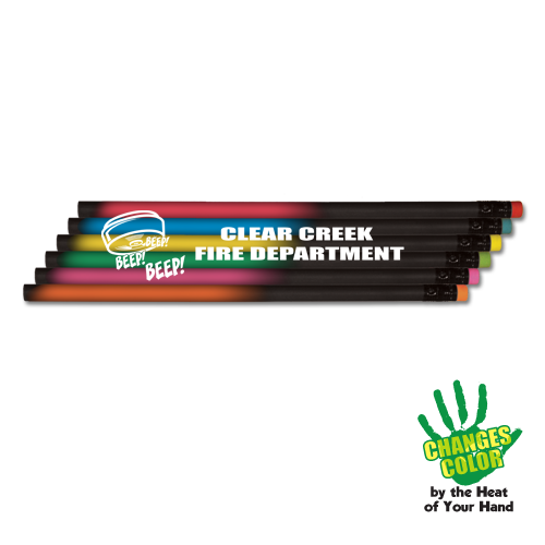 Pencils shipped in 6 assorted colors; yellow, red, pink, orange, green, blue. Imprint in White.